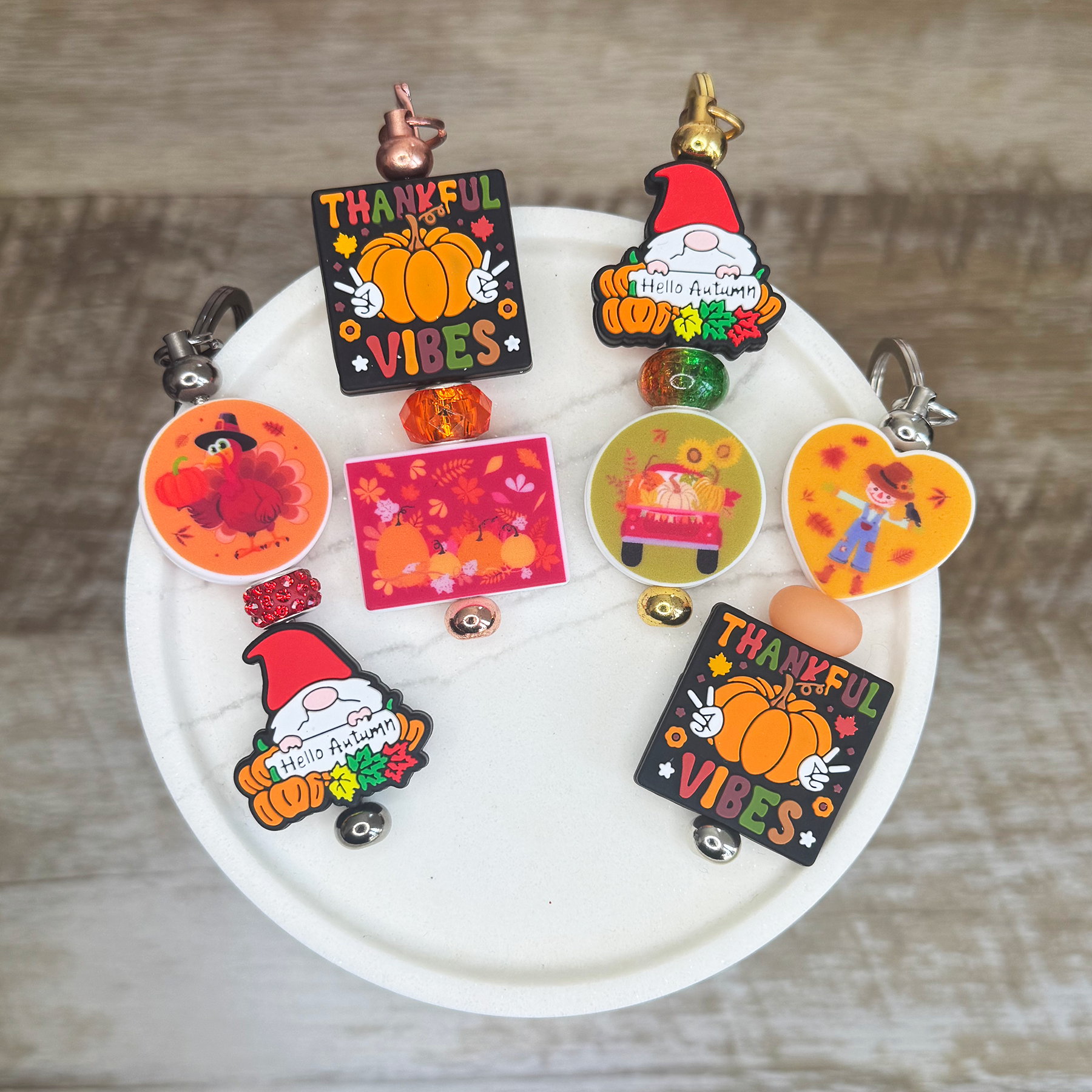 This kit includes a themed bead pack featuring over 10 beads, including two festive focal beads—both autumn-inspired and full of seasonal whimsy—paired with coordinating accent beads in cozy fall colors and themes.