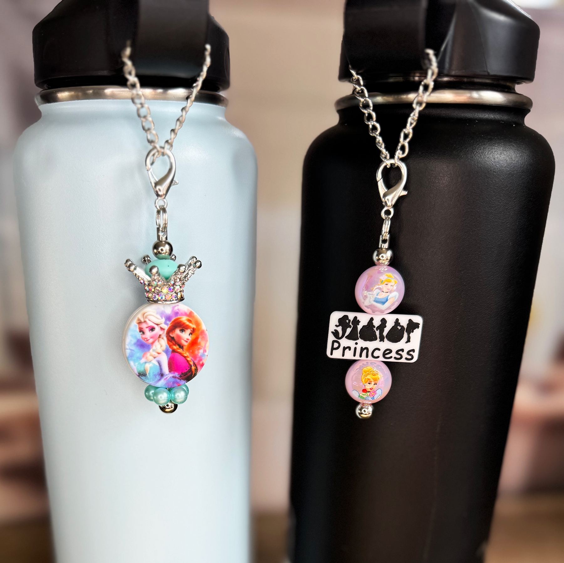 -Beadbable Bottle (Stanley Cup) Chain Kits include a durable chain base with an adjustable link design made to fit a variety of tumblers and bottles, plus two coordinating charms.