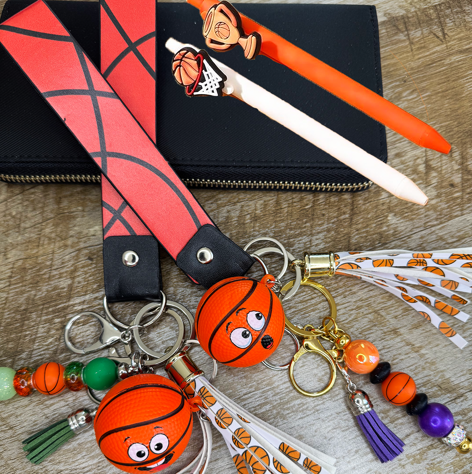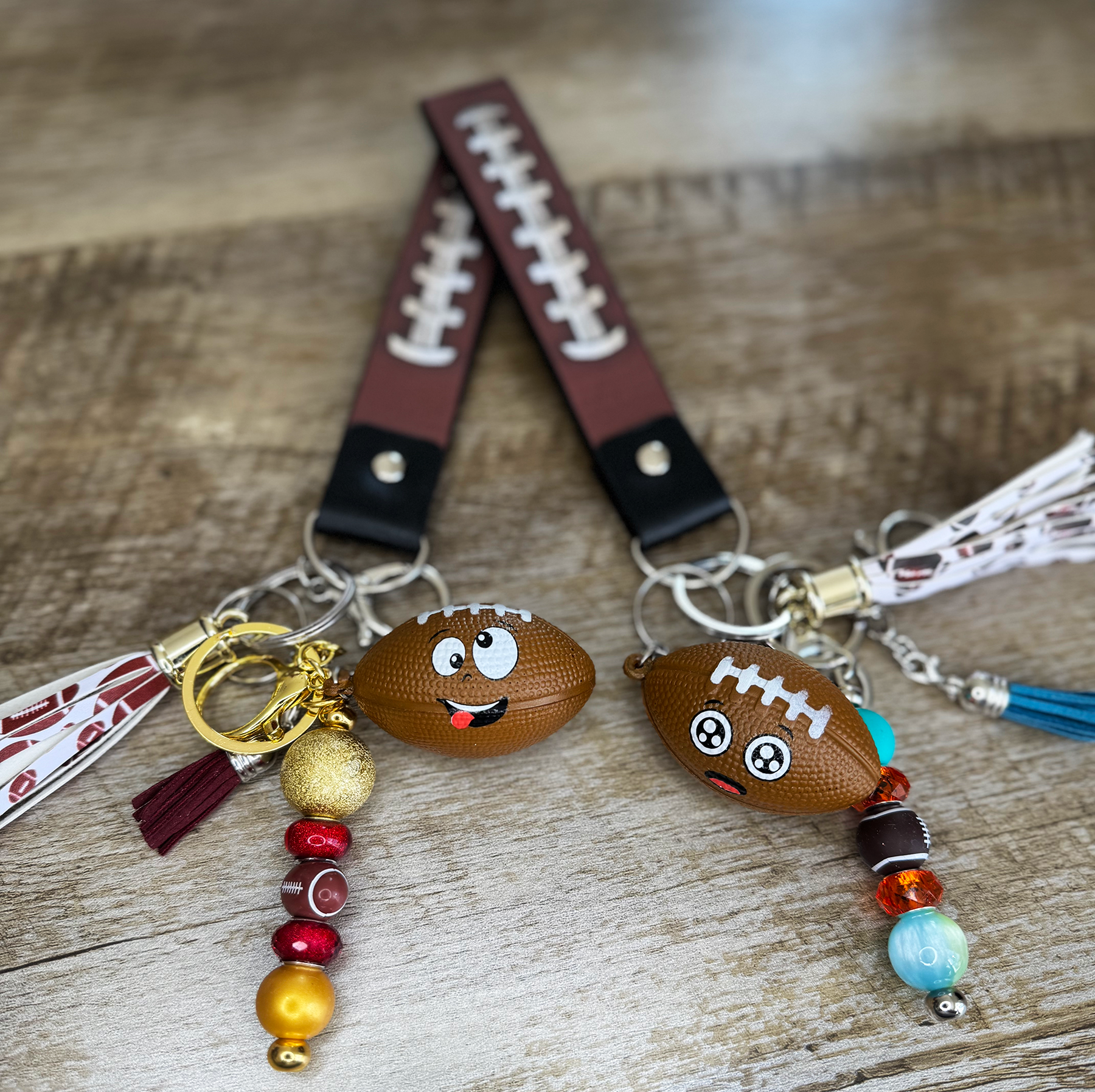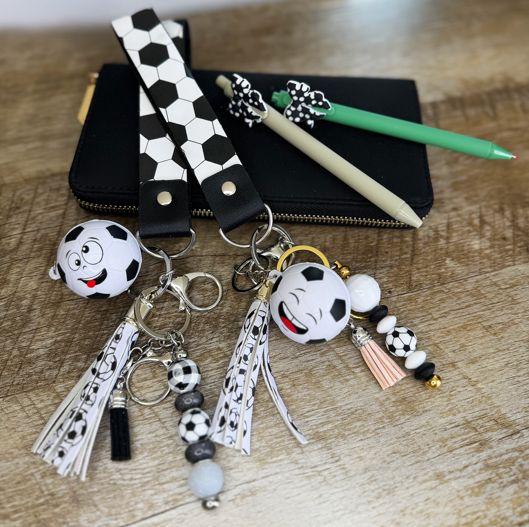 -A mini beadable Sports Fanatic keychain, complete with a keychain base and 8+ beads with a sports ball bead and accent beads in your team colors