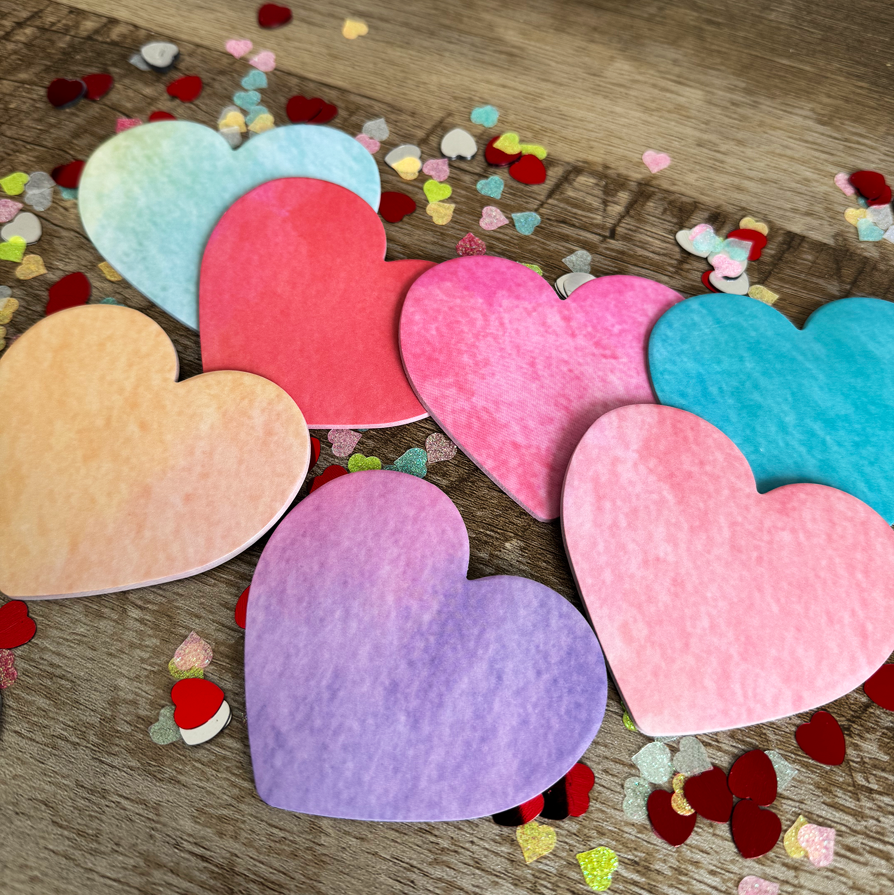 -Notepad Pack – A cheerful mix of paper goods, including one whimsical memo pad, two glitter sticky notepads, and three tie-dye heart sticky notepads for notes, reminders, and love-filled lists.